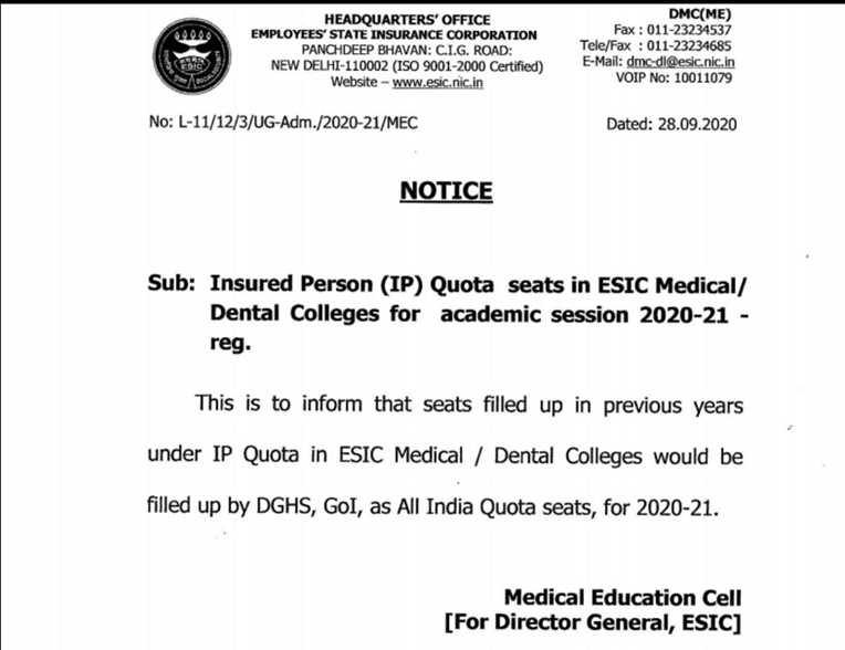 that under the Wards of IPs Quota, “more than 300 ward of IPs have got admission in ESI Medical Colleges to pursue the MBBS courses”.