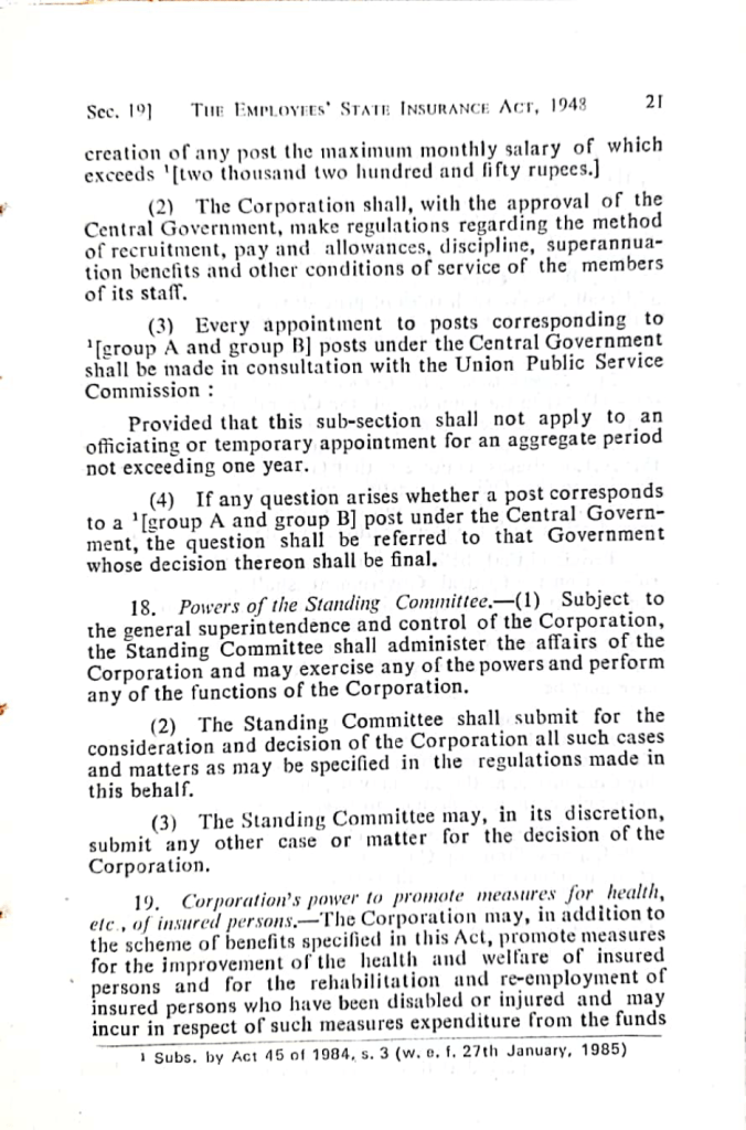 11. When the ESIC employees’ union got recognition as Trade Union, things became worse for the Management. The demands from the employees union in the Corporation became never-ending. The Director Generals of the ESI Corporation thought it necessary to put a stop to such unending demands from the unions. They worked on it and brought in an amendment through Act 29 of 1989. The amended provisions of Sec. 17 (2), which were brought into force in October 1989 read as under: