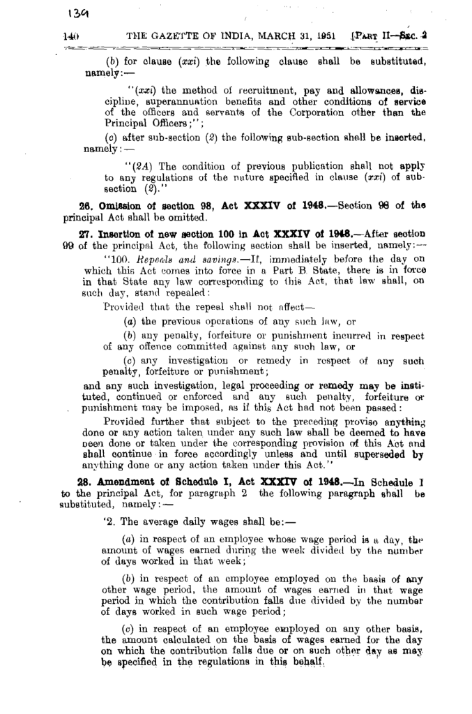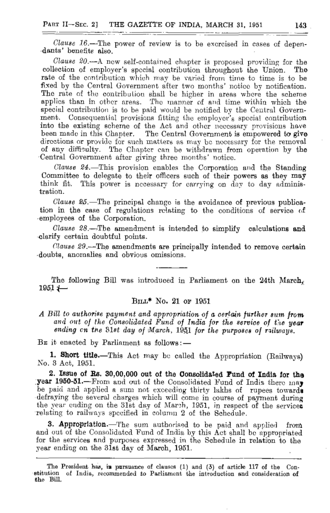 a. Clause 25 of the ESI Act (Amendment) Bill No. 24 of 1951 (published in Pages 139 & 140 of the Gazette on 31.03.1951)