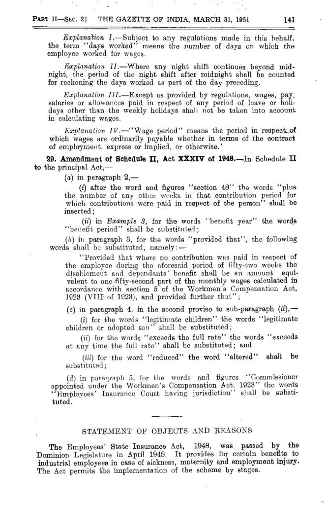 Suffice it to quote here, what Mr Jagjivan Ram, the then Labour Minister of India in 1951 had, on 19.03.1951, said before he Parliament of India while explaining the need for inserting Sec. 97 (2A) along with other amendments, at the time of tabling the ESI (Amendment) Act, 1951, in Para 3 of his Statement of Objects and Reasons: