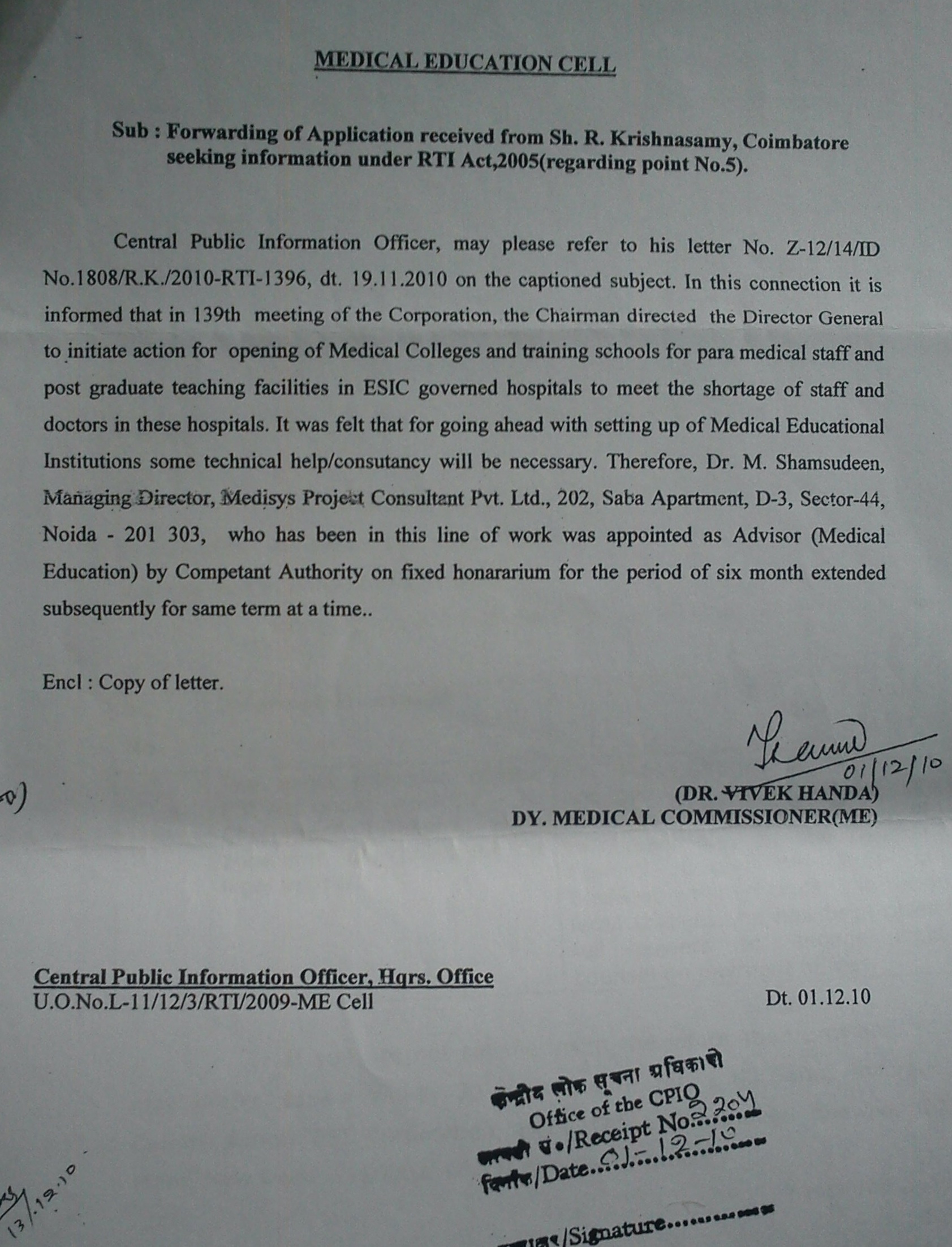 Appointment of Advisor (Medical Education) in the ESIC!